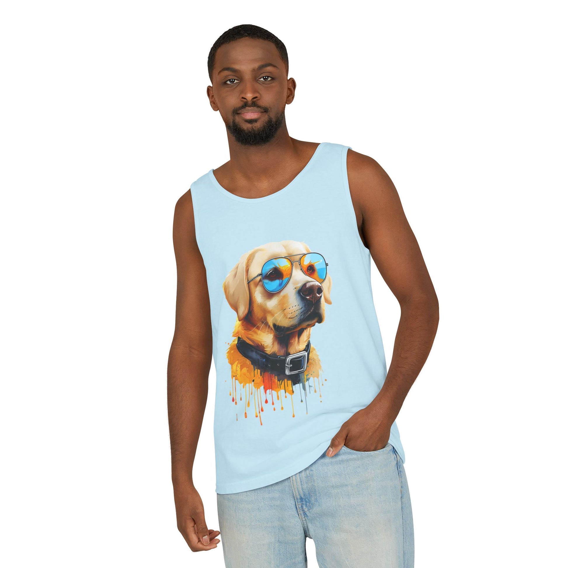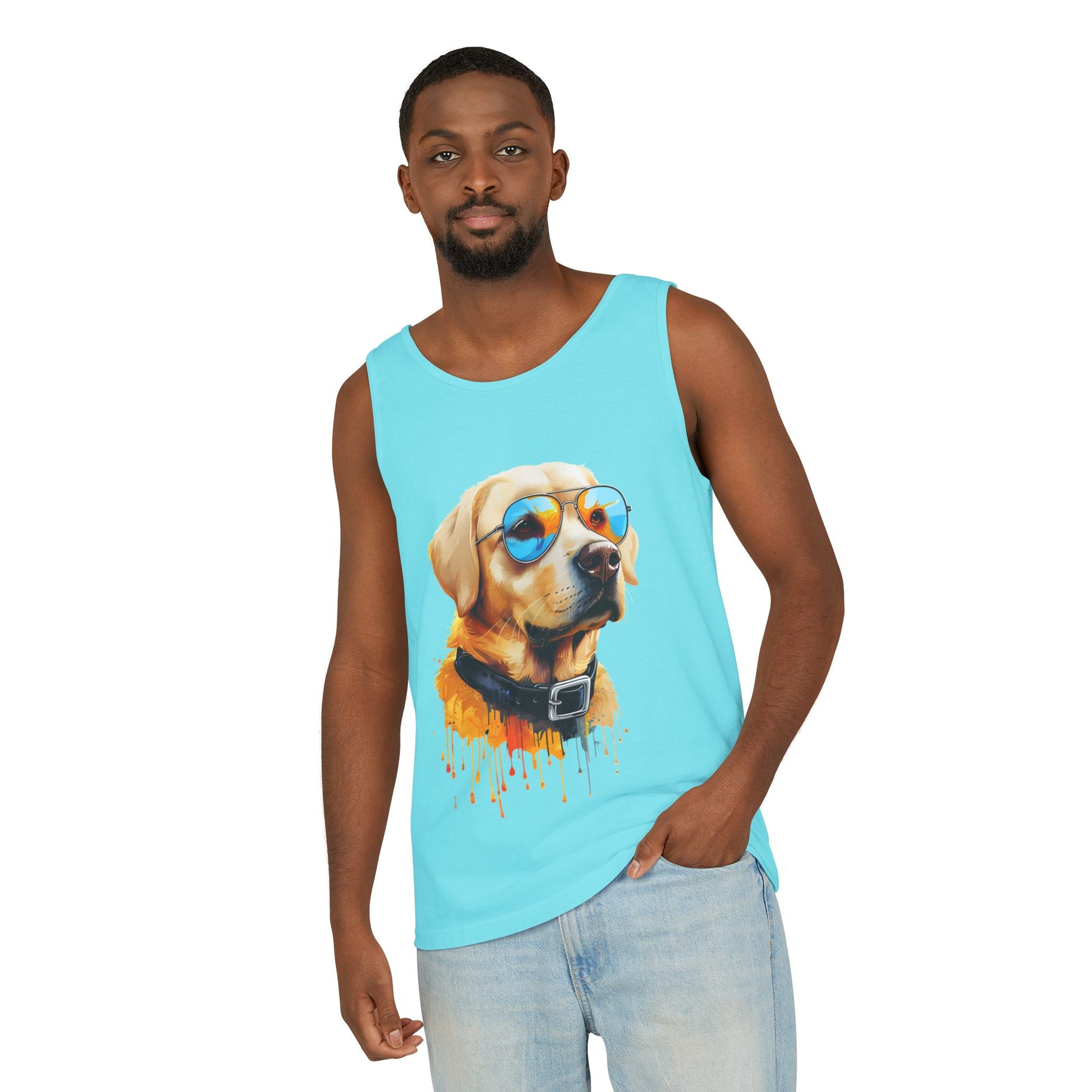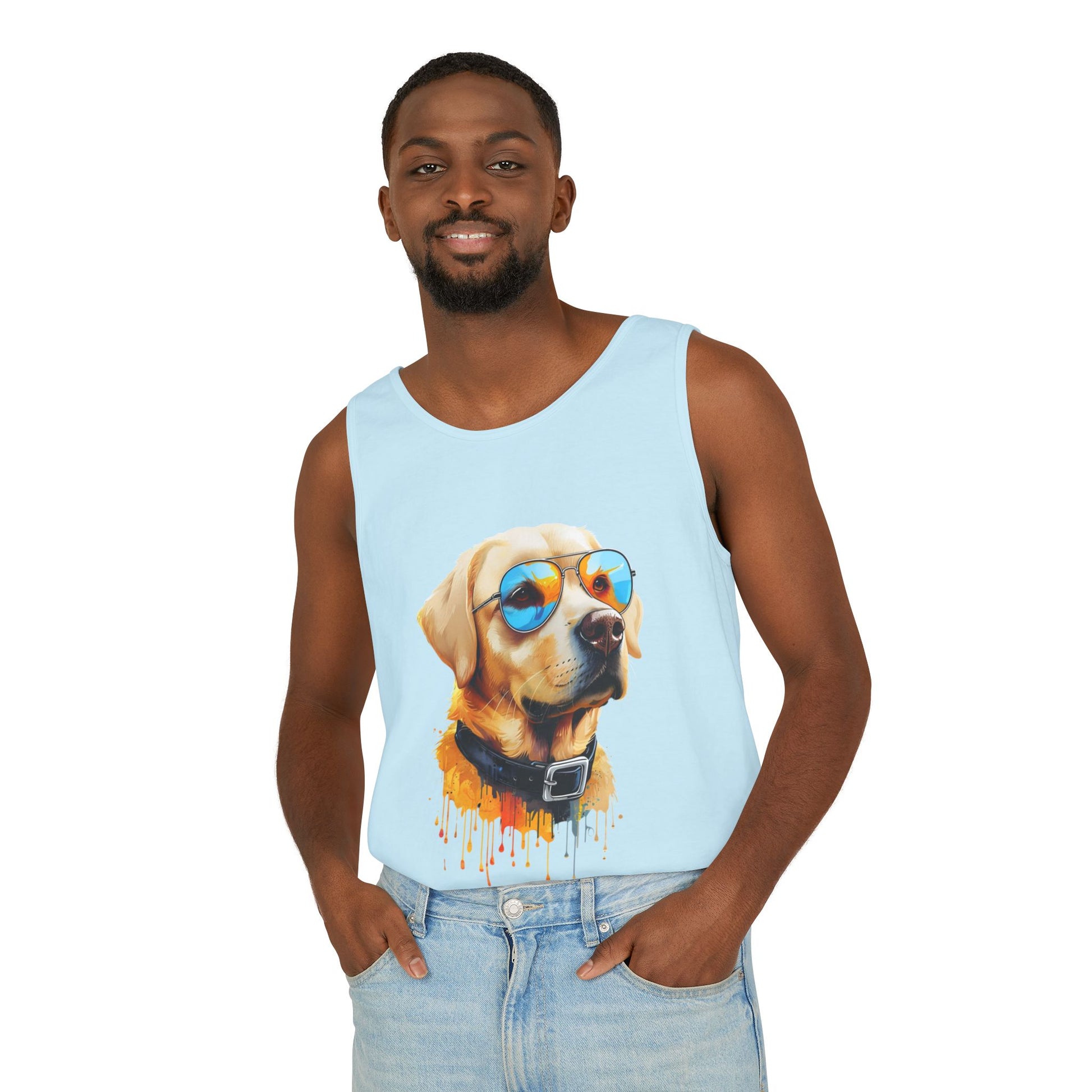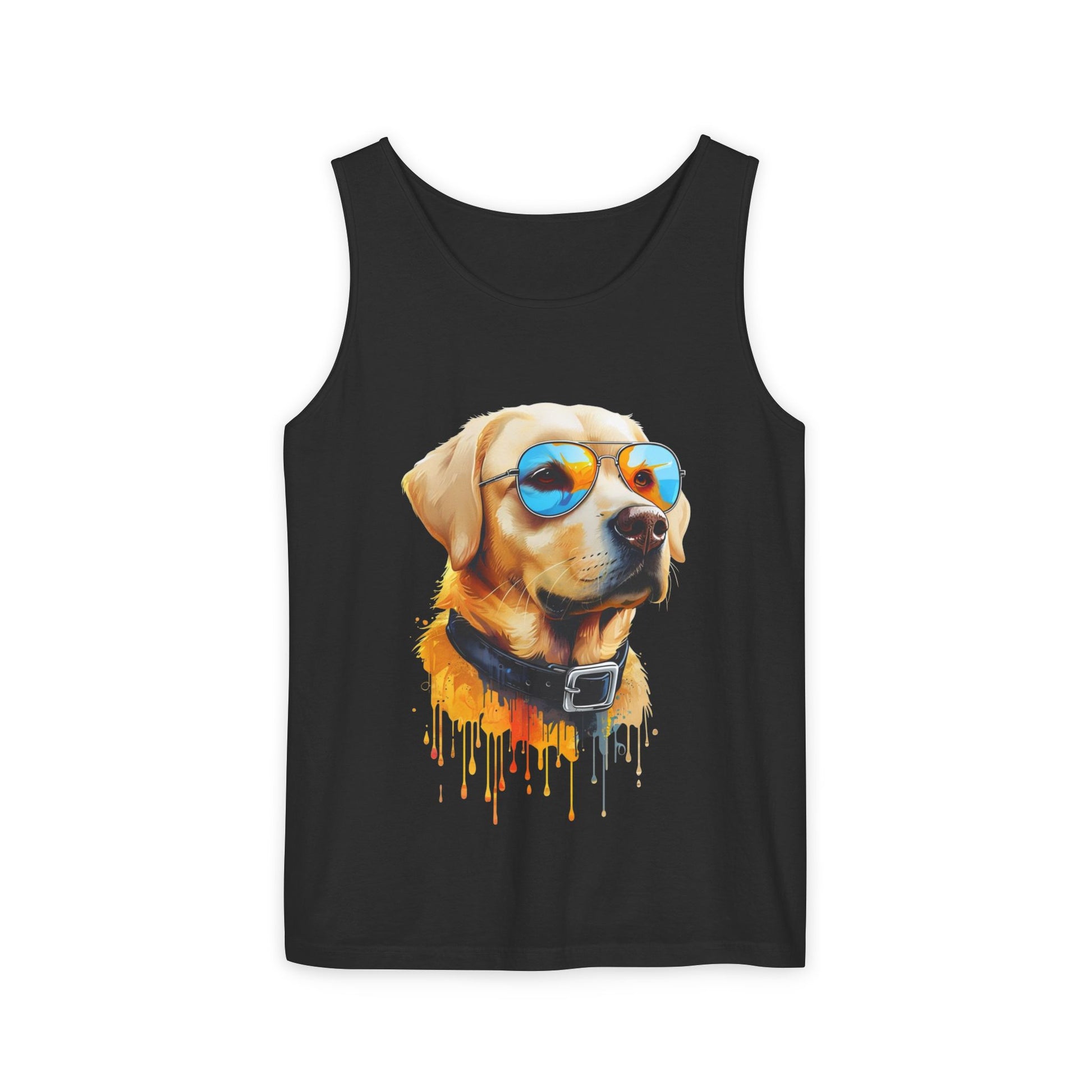 This garment-dyed tank top combines comfort and fun, ideal for casual outings or relaxed gatherings. Whether you're at the beach, enjoying a picnic, or hanging out with friends, this top adds a vibrant touch to your summer wardrobe. It's perfect for dog lovers, Labrador Retriever owners, art enthusiasts, or anyone who enjoys expressing their personality through fashion.