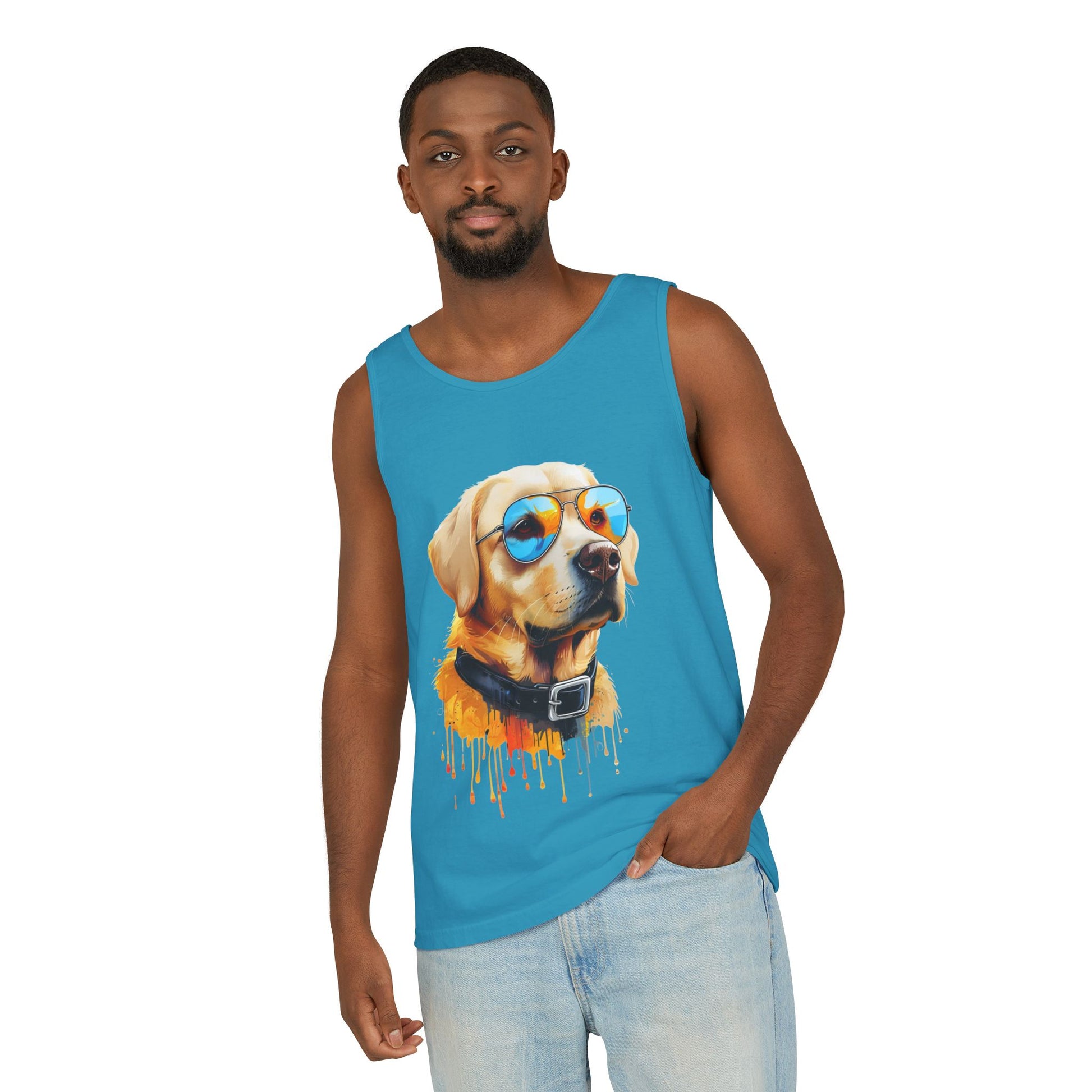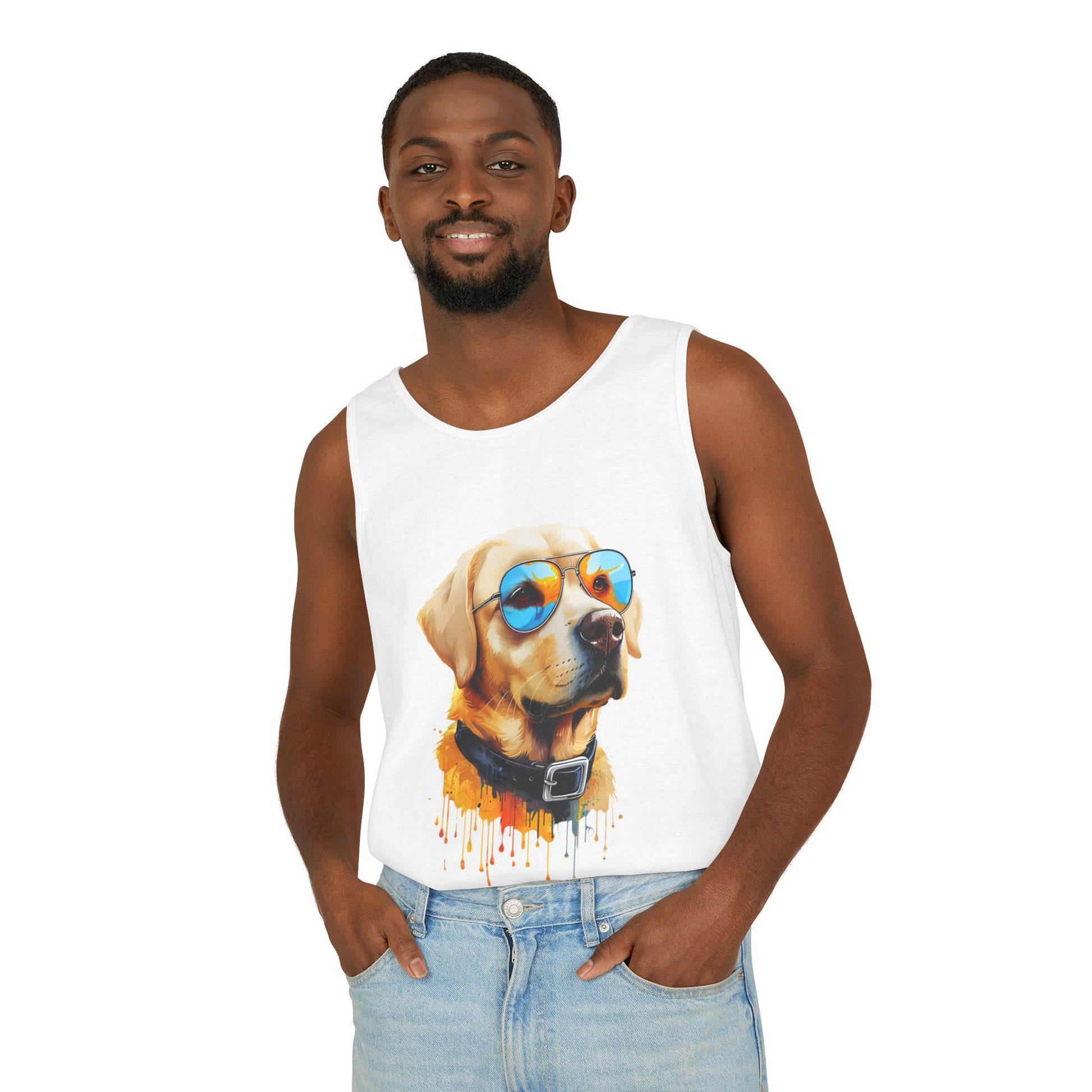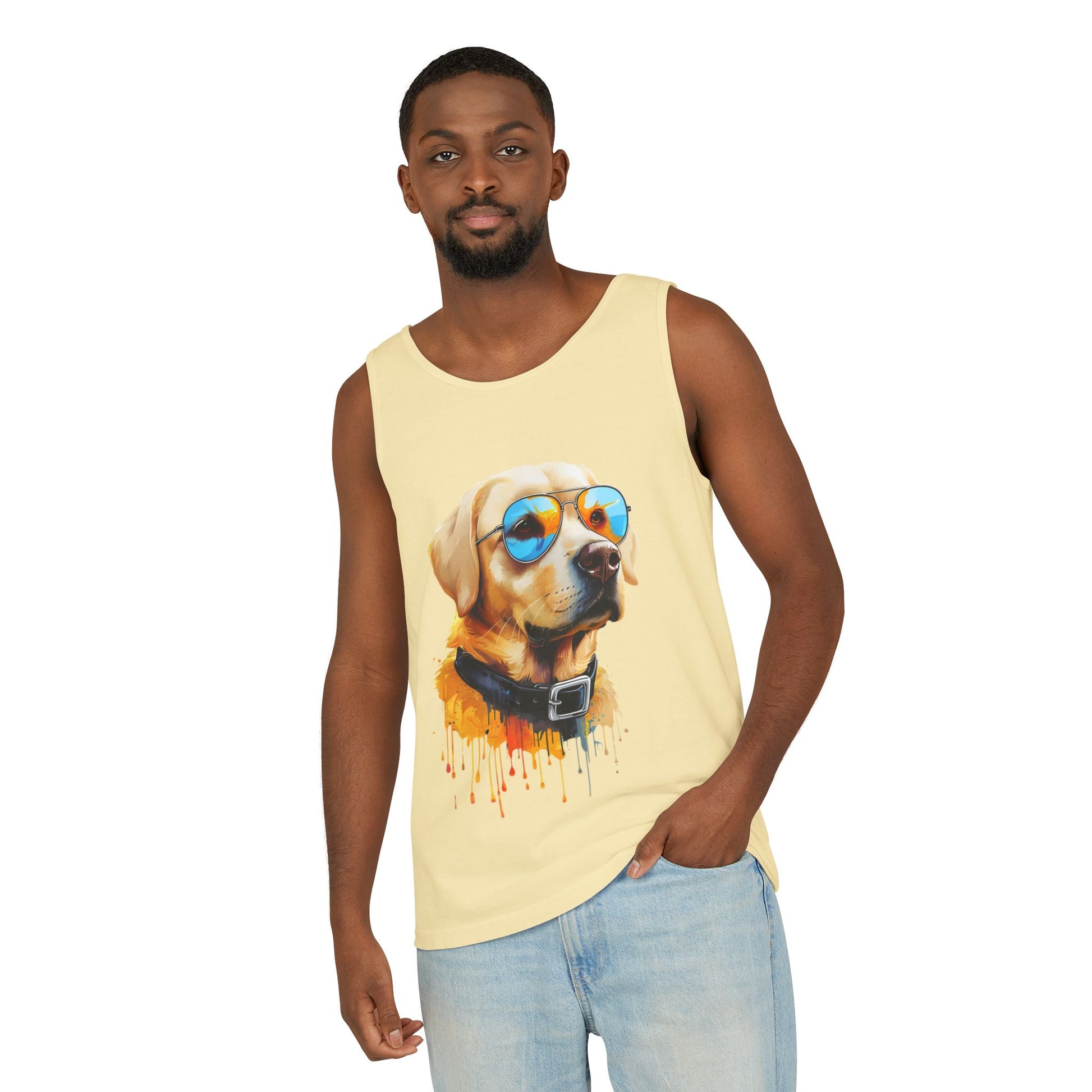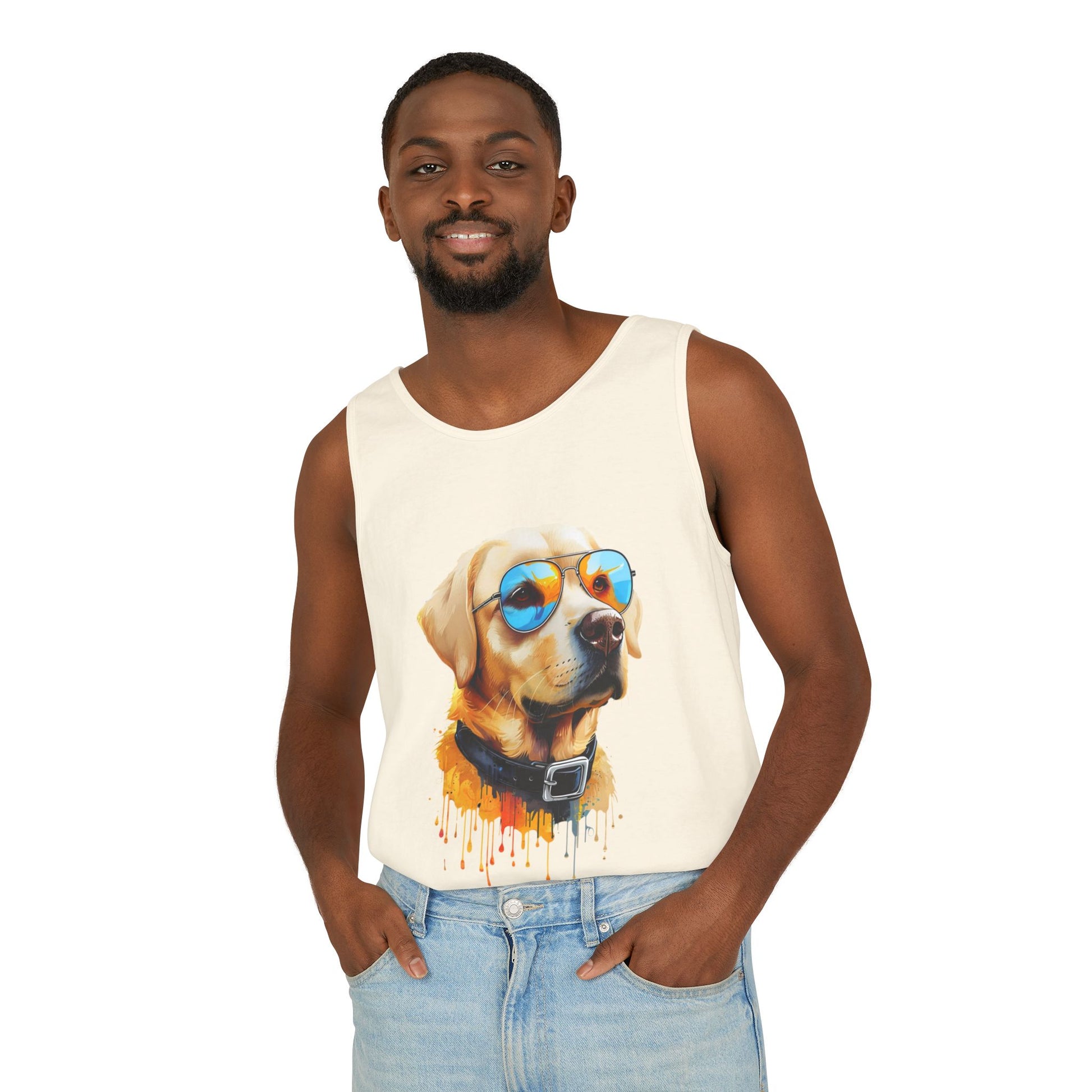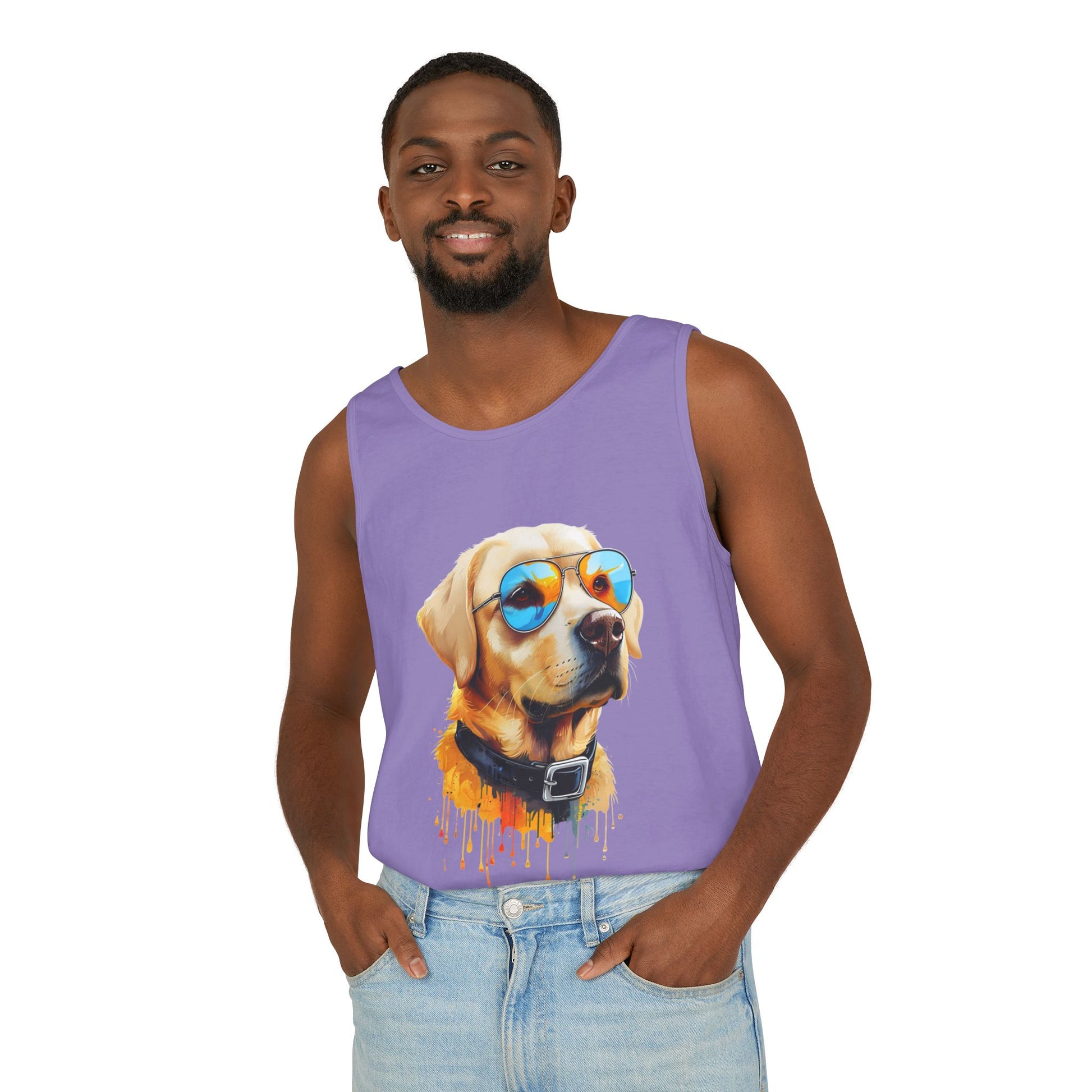 This garment-dyed tank top combines comfort and fun, ideal for casual outings or relaxed gatherings. Whether you're at the beach, enjoying a picnic, or hanging out with friends, this top adds a vibrant touch to your summer wardrobe. It's perfect for dog lovers, Labrador Retriever owners, art enthusiasts, or anyone who enjoys expressing their personality through fashion.