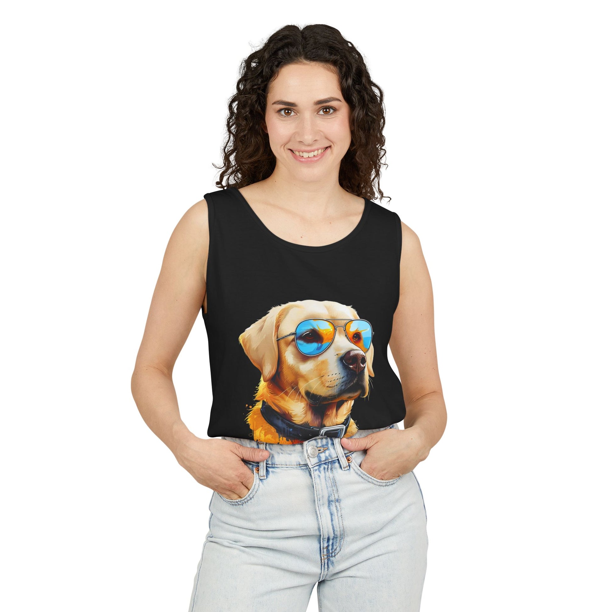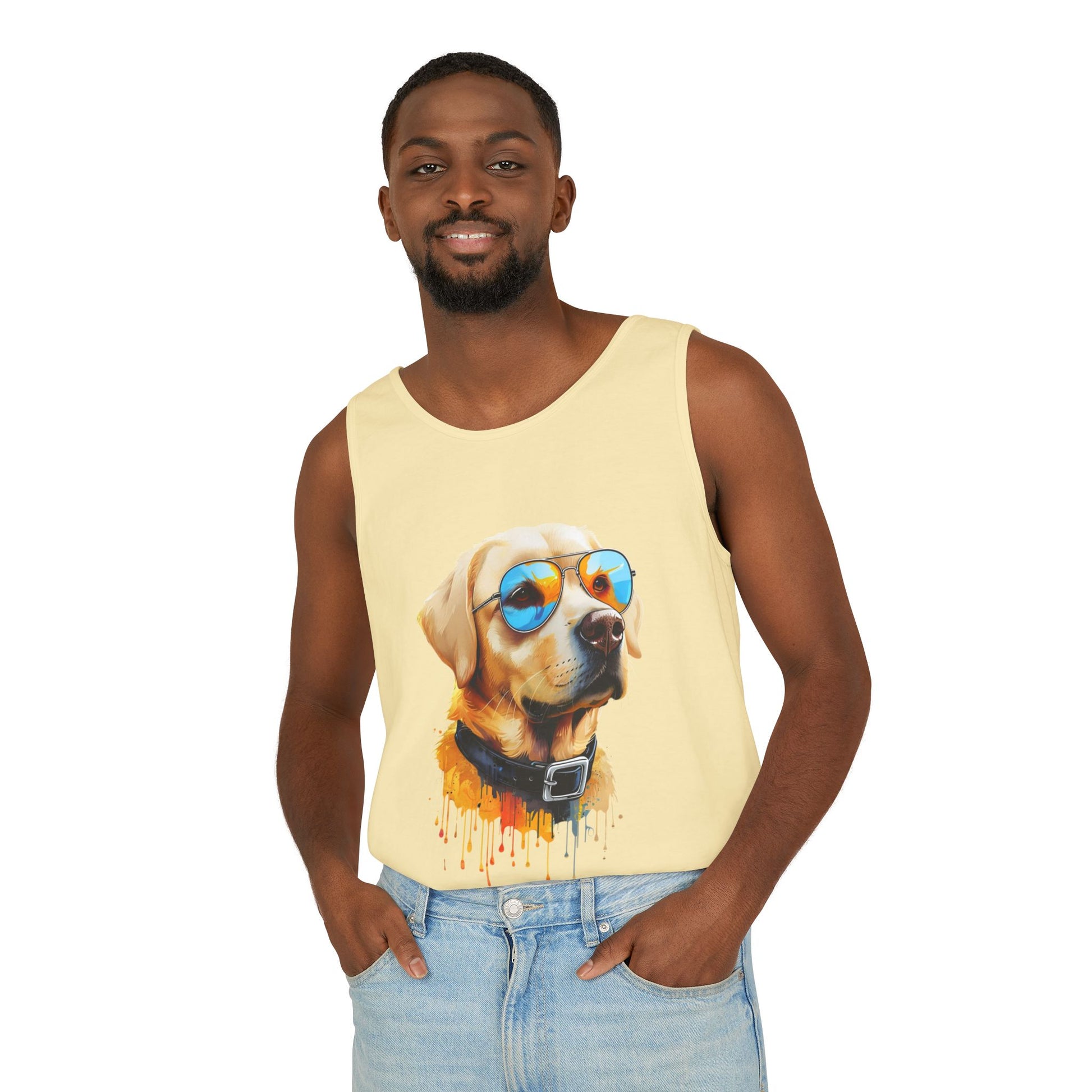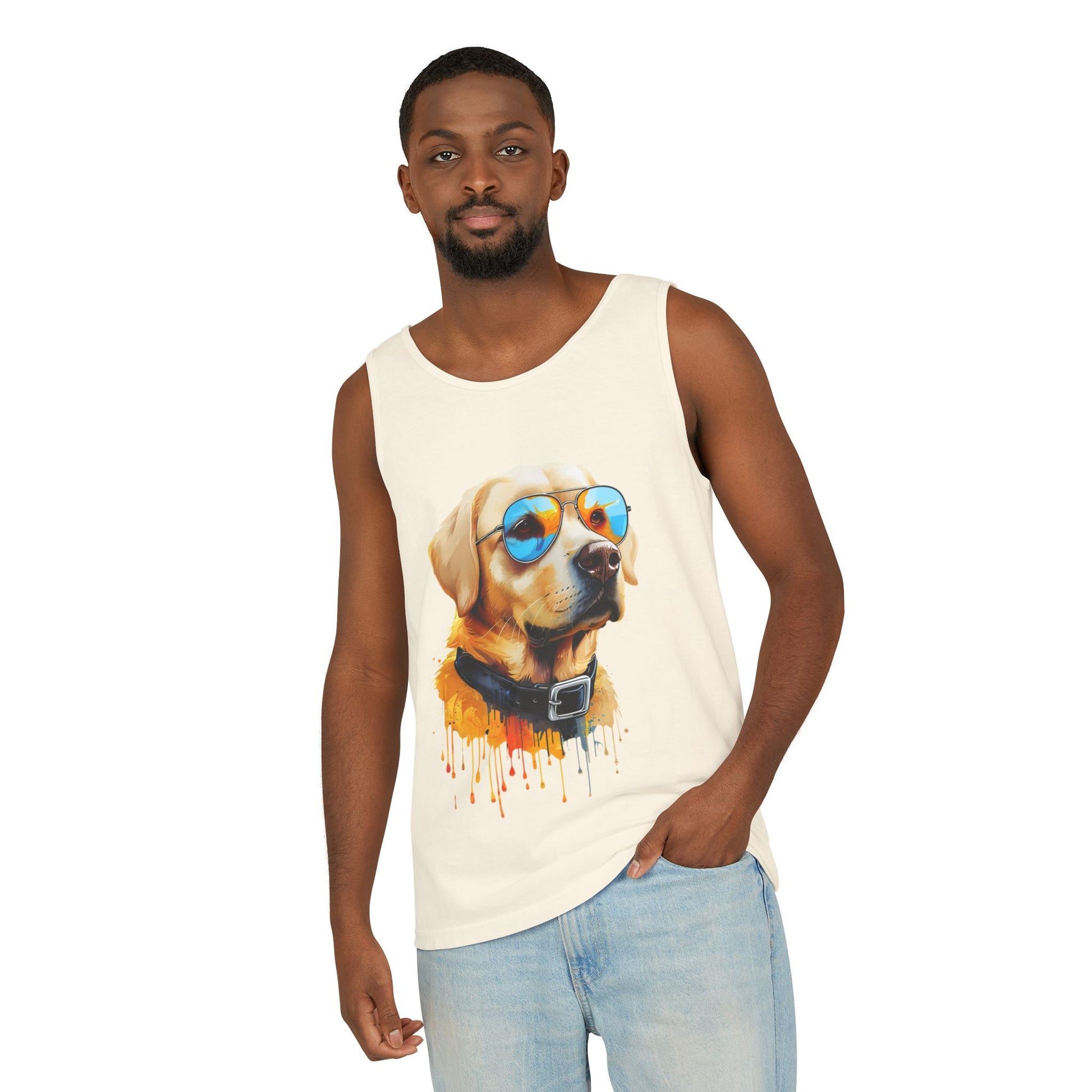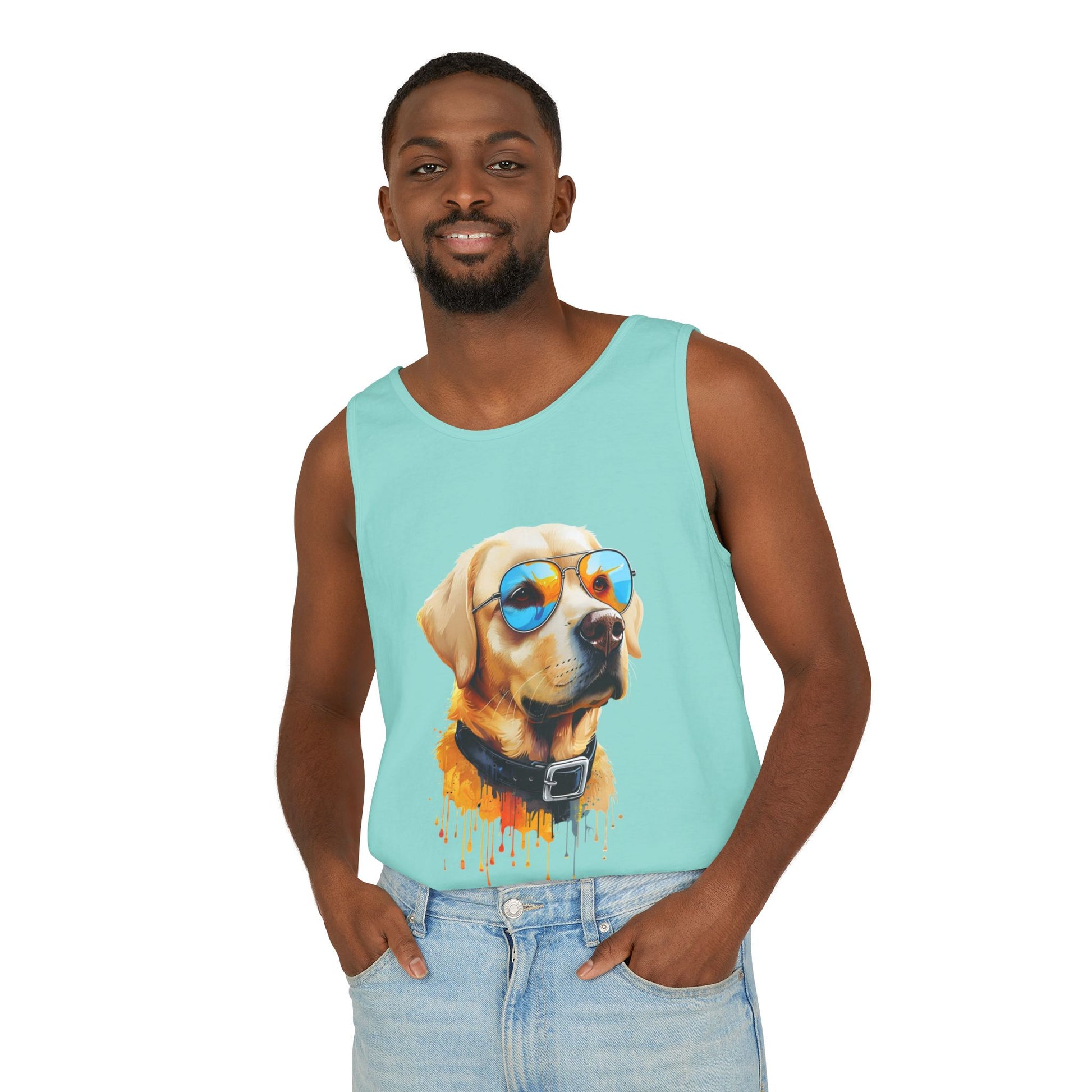 This garment-dyed tank top combines comfort and fun, ideal for casual outings or relaxed gatherings. Whether you're at the beach, enjoying a picnic, or hanging out with friends, this top adds a vibrant touch to your summer wardrobe. It's perfect for dog lovers, Labrador Retriever owners, art enthusiasts, or anyone who enjoys expressing their personality through fashion.