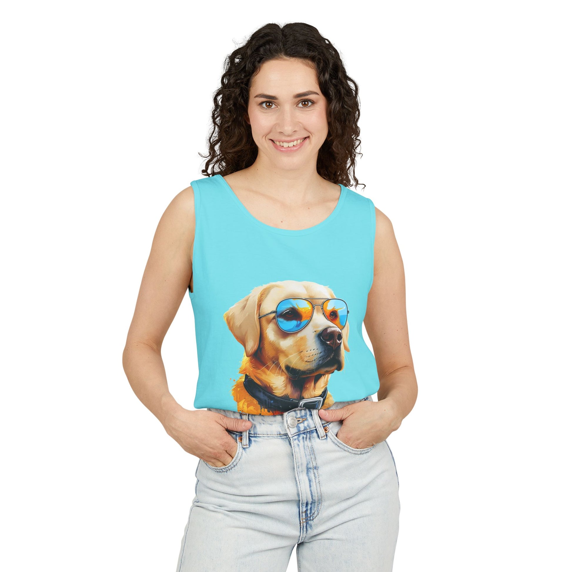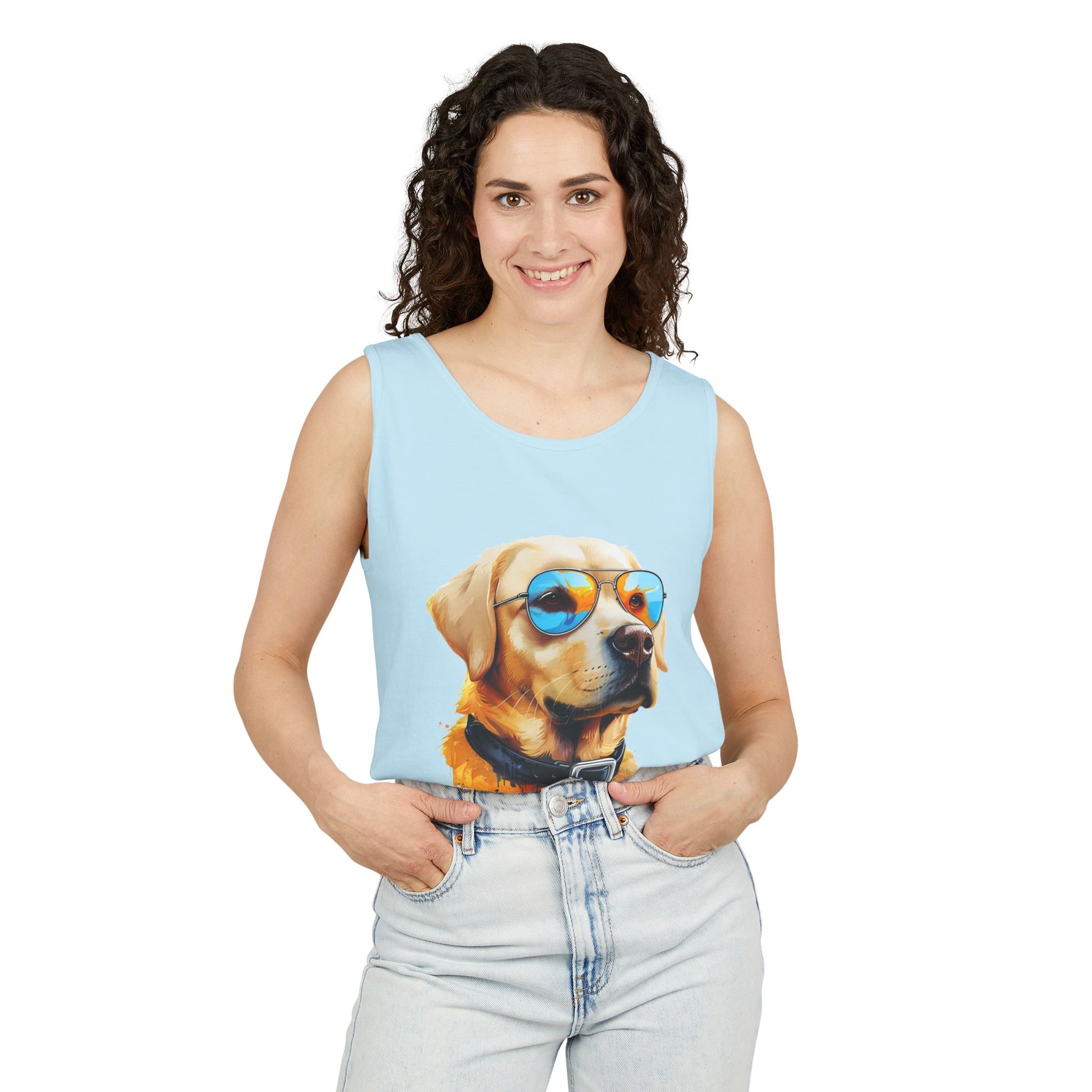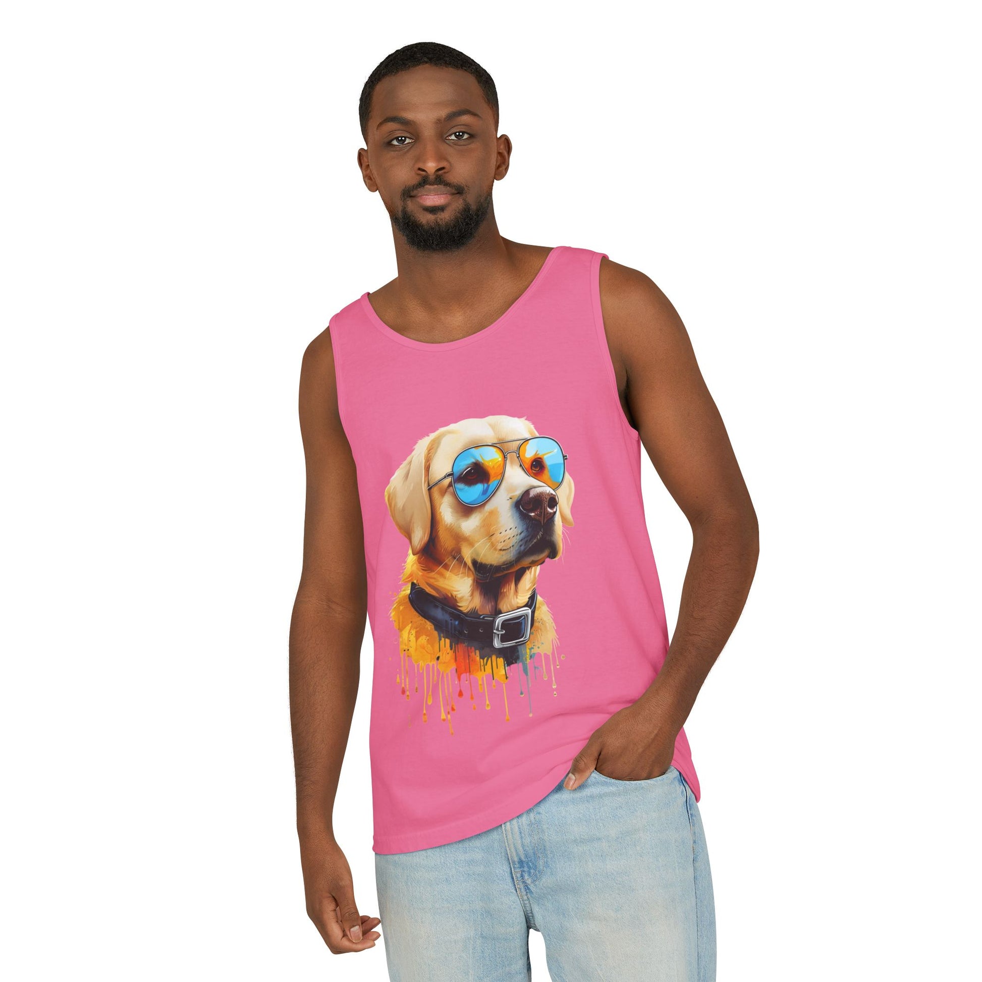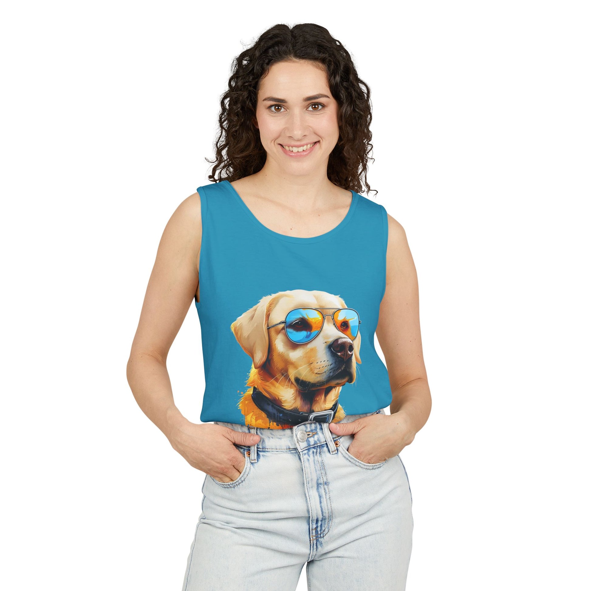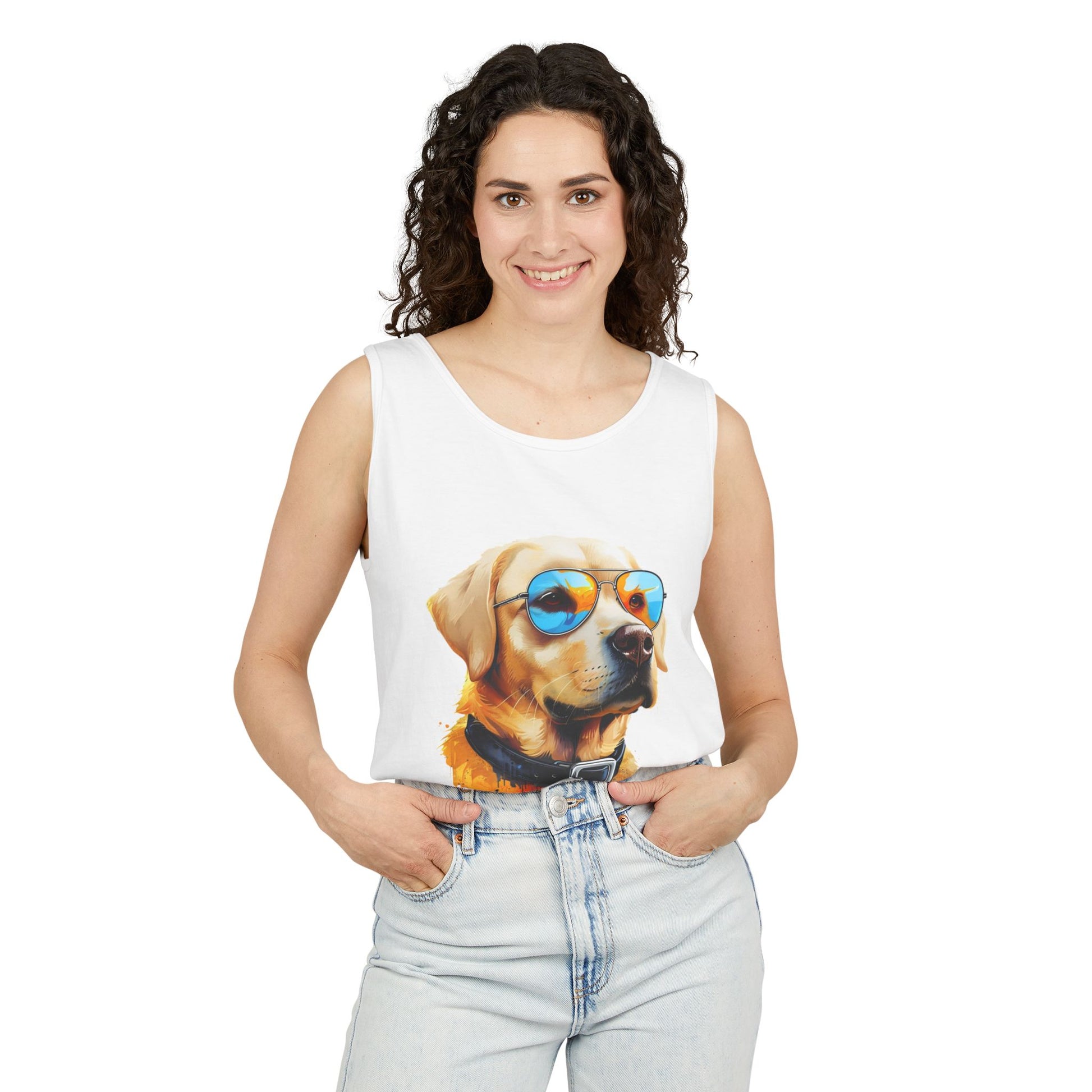 This garment-dyed tank top combines comfort and fun, ideal for casual outings or relaxed gatherings. Whether you're at the beach, enjoying a picnic, or hanging out with friends, this top adds a vibrant touch to your summer wardrobe. It's perfect for dog lovers, Labrador Retriever owners, art enthusiasts, or anyone who enjoys expressing their personality through fashion.