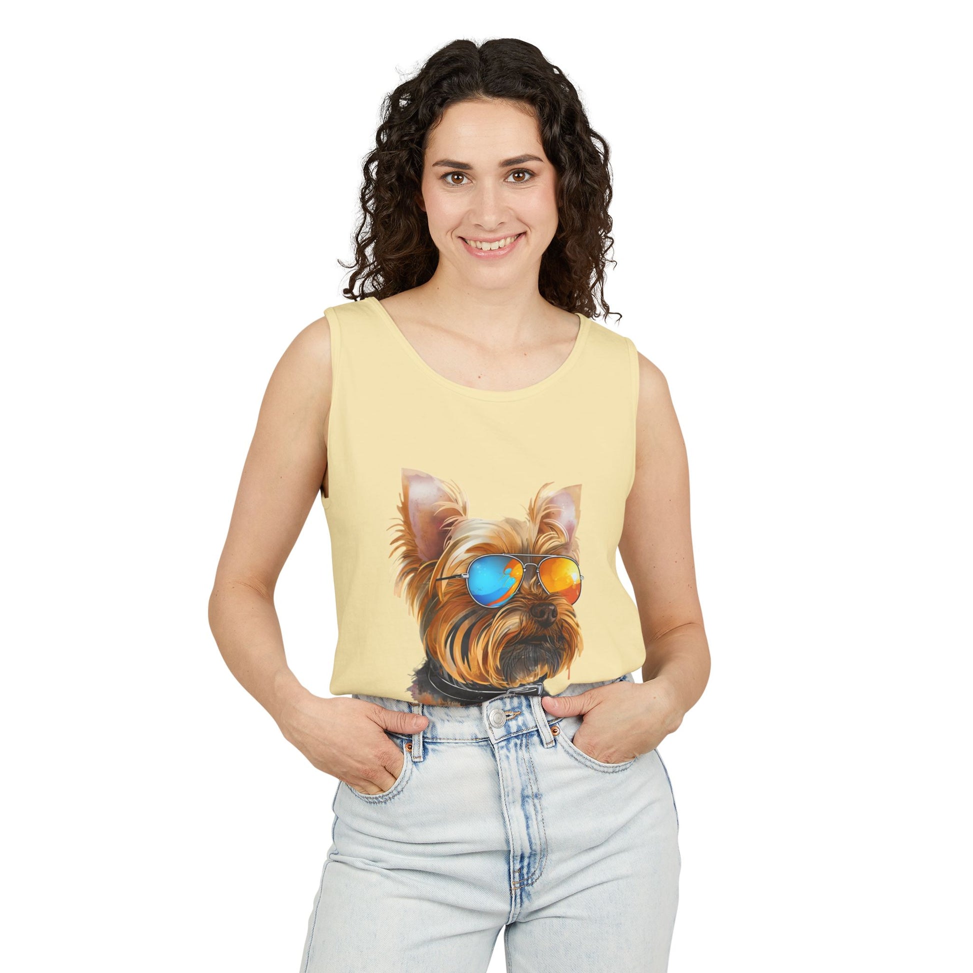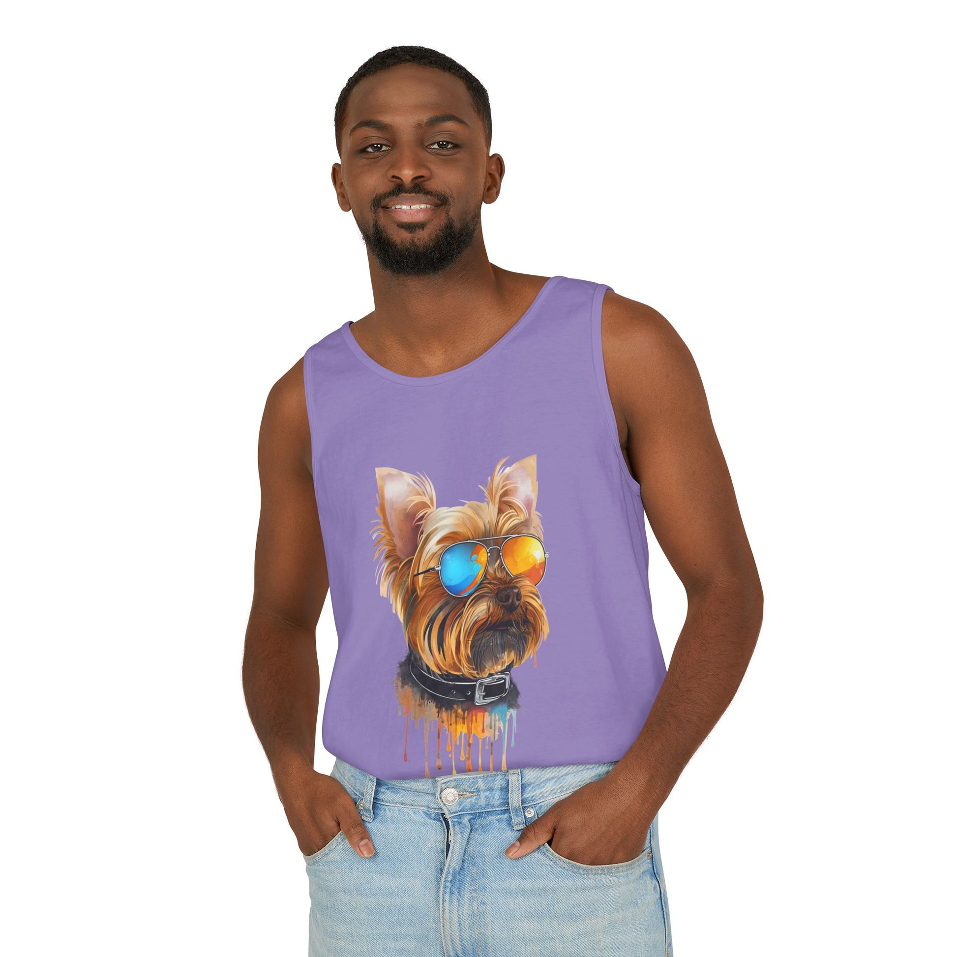 This garment-dyed tank top combines comfort and fun, ideal for casual outings or relaxed gatherings. Whether you're at the beach, enjoying a picnic, or hanging out with friends, this top adds a vibrant touch to your summer wardrobe. It's perfect for dog lovers, Yorkie owners, art enthusiasts, or anyone who enjoys expressing their personality through fashion.